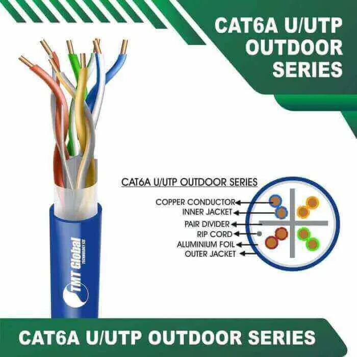 TMT Global Cat 6a 23awg 4 twisted pair utp cable 305m are Manufactured Tested and Complied with IEC 60332-1-2 EN 50173-1:2011 ISO/IEC11801:2011(Ed. 2.2) ANSI/TIA/EIA-568.2-D IEC61935-2:2010(Ed.3.0) EN 50173-2:2007 including Amendment A1:2010 Requirements for Patch Cord Assemblies and Provide High Performance levels for structured cabling systems.Cat6a 23awg 4 twisted pair utp cable 305m