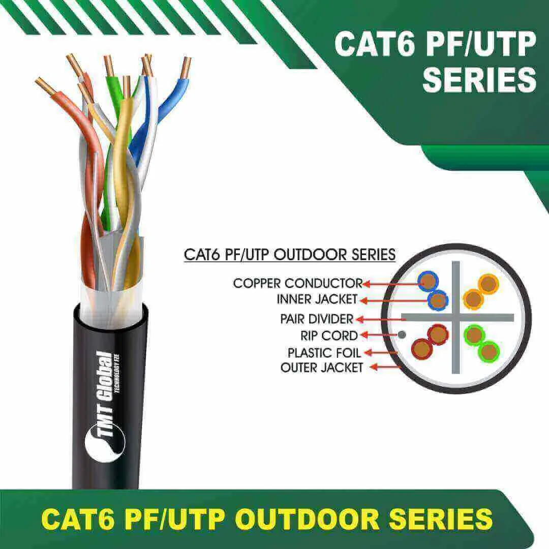 TMT GLOBAL 4 pair cat 6 cable f/utp 23 AWG 4 Twisted Pair 305M are Manufactured Tested and Complied with ANSI/TIA/568.2-D CENELEC EN 50288-5 IEC 61156-5 (ISO/IEC-11801 Class -Ea). Cat6a Series is Designed to Ensure the Highest levels of performance, reliability, and longevity, and are ideal for large enterprise and small business.CAT6 PF-UTP 23AWG 4 Twisted Pair Cable 305M