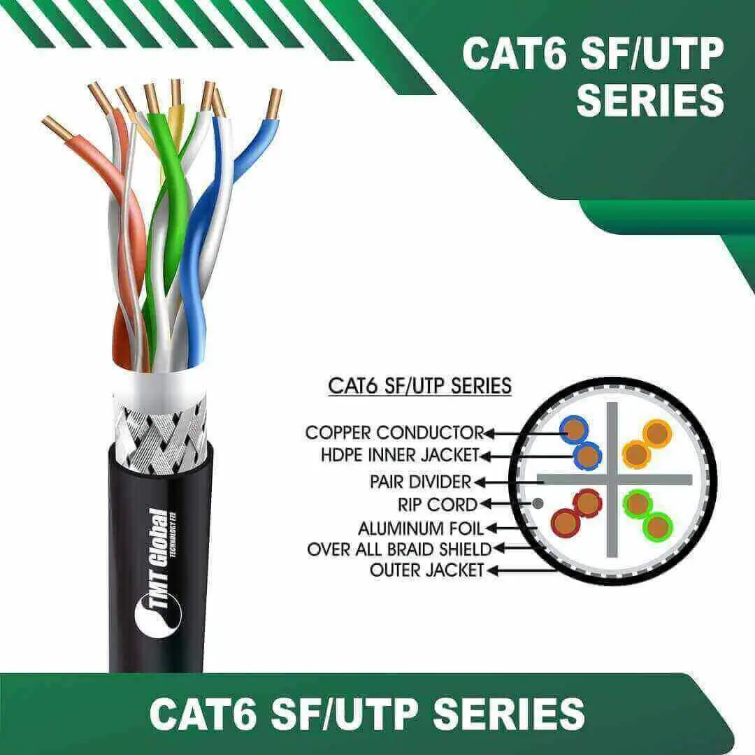 TMT Global Technology LTD aims to provide the best quality products, including structured cabling systems, copper and fiber optics range, access control systems, gate automation, lighting control systems, PIR motion sensors, UHF long-range readers, automatic parking solutions, SMATV systems, audio video intercom systems, audio visual systems, and public address systems. Industrial and building automation cables and accessories lead to customer satisfaction and reliability. All TMT Global products meet or exceed rigorous industry and regulatory standards for quality, reliability, and efficiency. From design and fabrication to finished product assembly, each phase in the manufacturing process is rigorously monitored and measured to ensure the highest quality, durability, and operating excellence.Cat6 sf utp pe Outdoor Cable 23 awg 4 pair 305m 6xxx5b Series