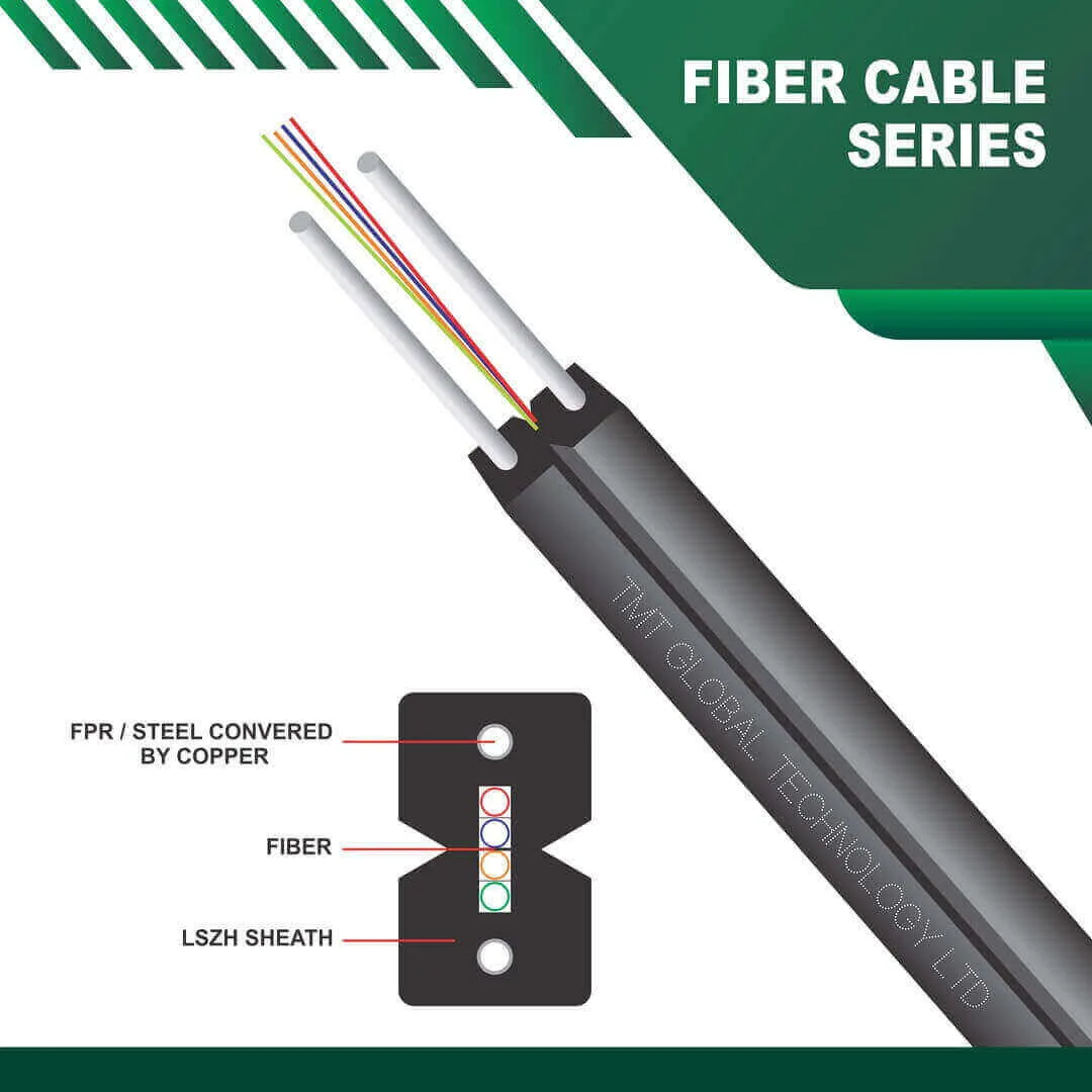 The TMT GLOBAL 4 core ftth cable fiber optic Single mode outdoor g657a1/a2 is a robust and efficient solution for modern telecommunication needs. This cable is designed for outdoor use, offering excellent durability and resistance to environmental factors. The G657A1/A2 specifications ensure flexibility and performance, making it suitable for various installation scenarios.